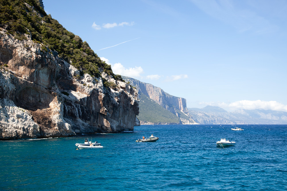 Seguindo pela costa leste, chegamos ao impressionante Golfo di Orosei. De Cala Gonone, embarcamos para explorar as praias cinematográficas de Cala Mariolu e Cala Goloritzé, onde falésias verticais mergulham no mar azul profundo.